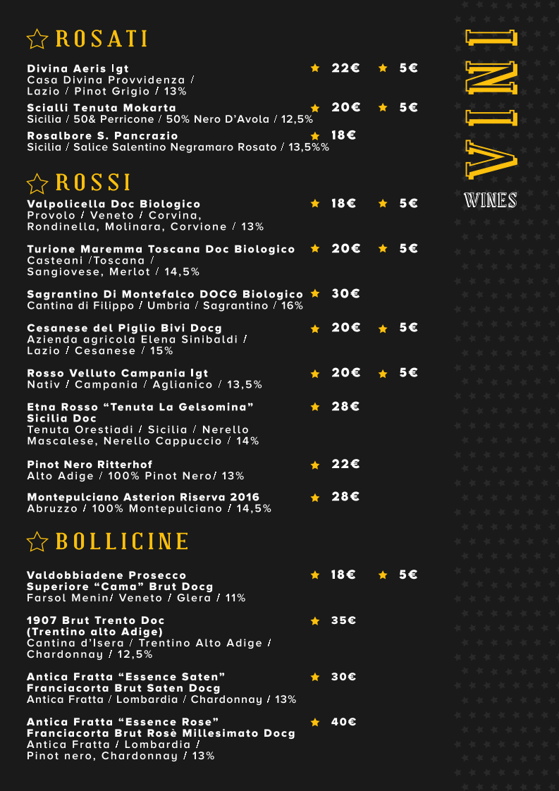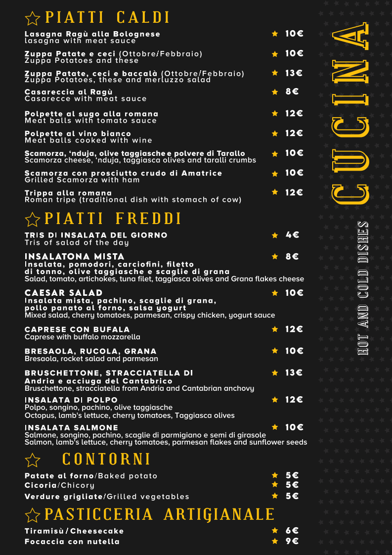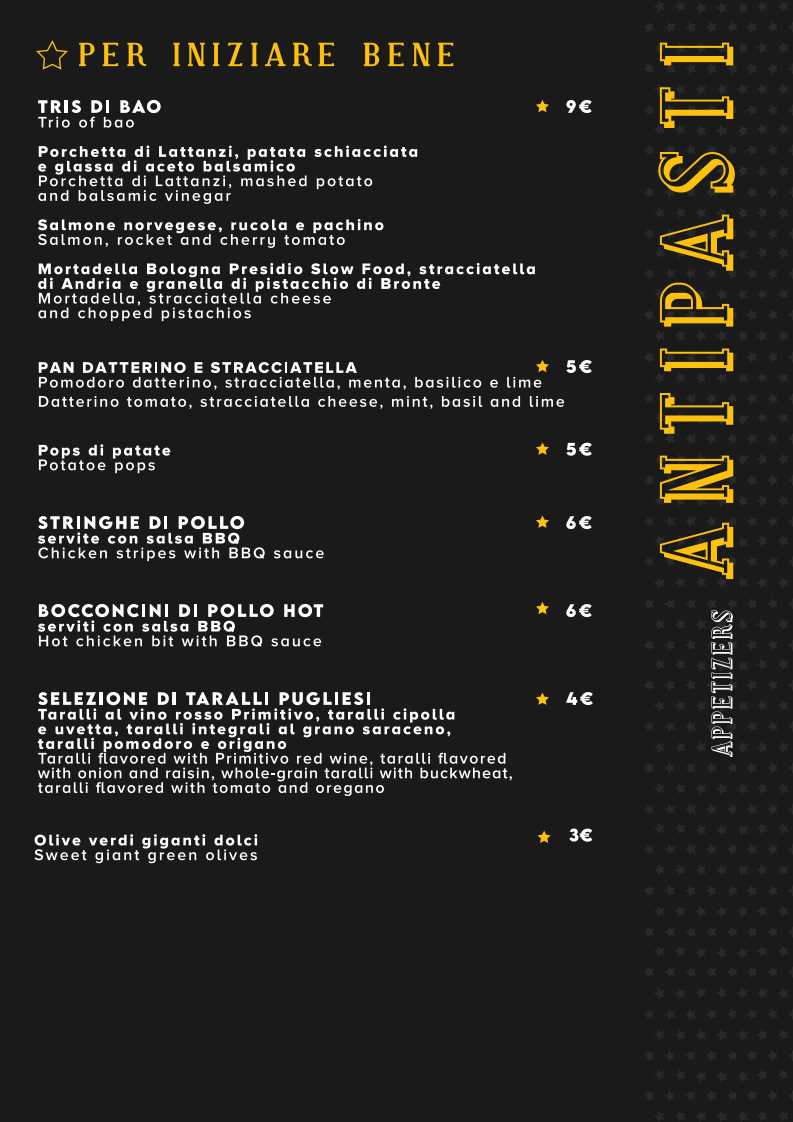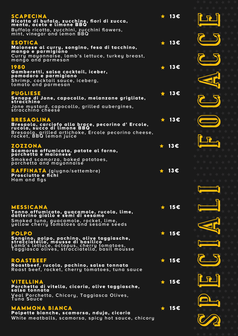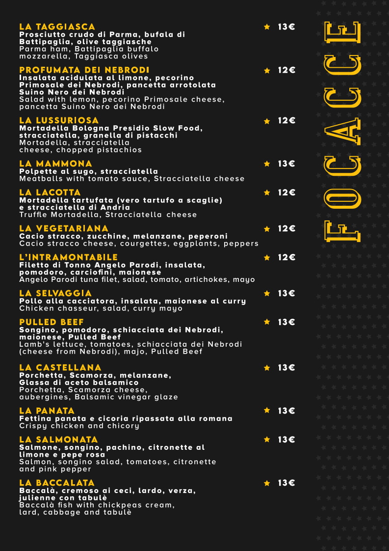 Focaccia Stellata Menu